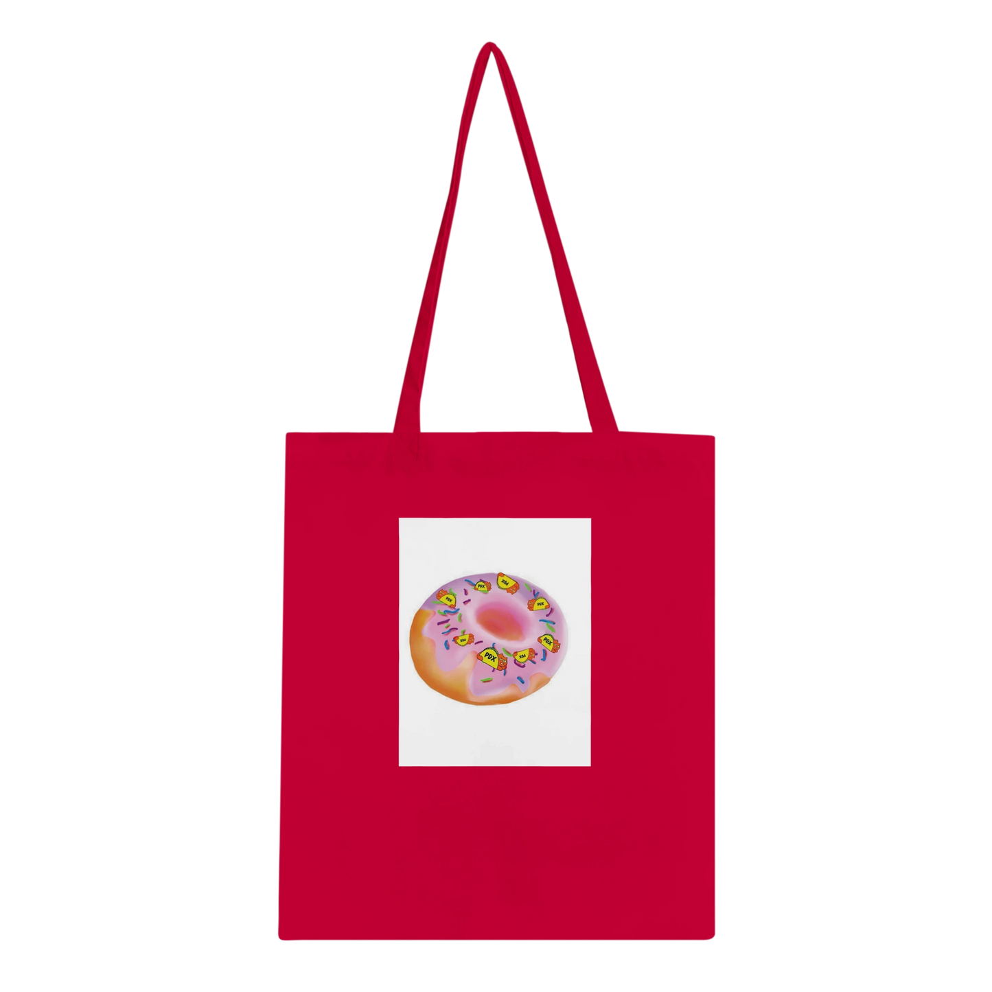 This tote bag has artwork by the artist Tacocat. Follow @tacocatpdx on Instagram.